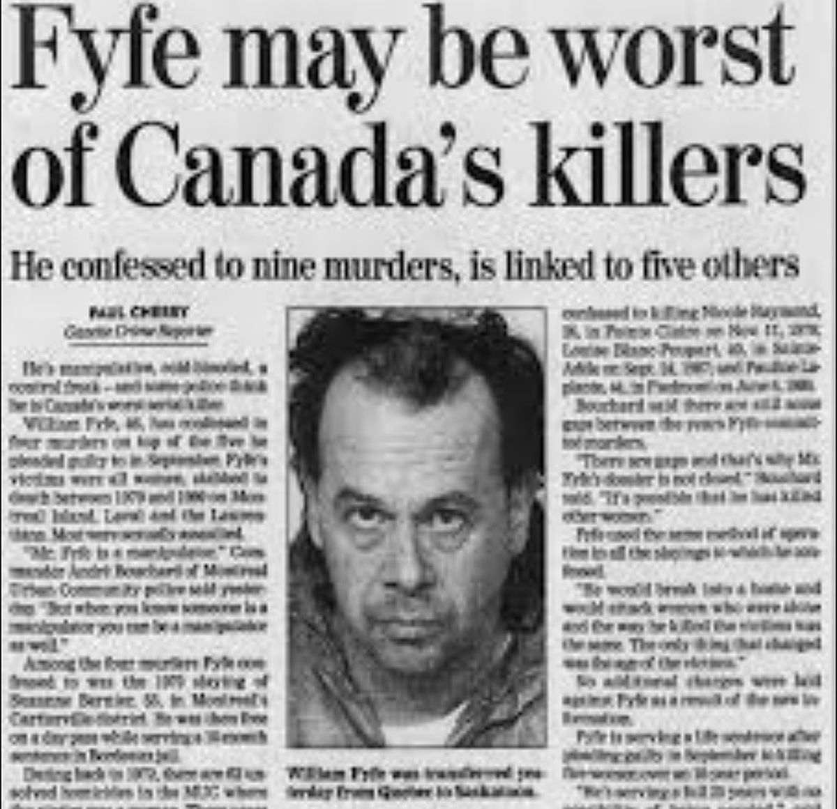 Willliam Patrick Fyfe, conocido en Canadá como "el reparador asesino", es un peligroso homicida que cumple prisión perpetua por matar violentamente a cinco mujeres