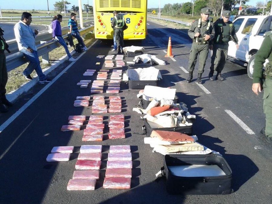 Se subieron en la capital de la vecina provincia a un colectivo de la empresa Tramat, que tenía como destino la ciudad de Santa Fe, el 29 de marzo de 2016. A las 8, el micro transitaba hacia el sur por la ruta nacional 12 y en el cruce con la provincial N° 6, en el Departamento La Paz, en Entre Ríos, personal de Gendarmería Nacional lo interceptó para un control vehicular rutinario. Después de realizar el control de los pasajeros, los uniformados hallaron en la bodega del micro 86 kilos de marihuana, dispuesta en 88 paquetes compactos, de forma rectangular, engrasados, envueltos en papel aluminio y nylon transparente. Estaban distribuidos en seis valijas y un bolso. Los tickets que tenía cada equipaje estaban tenían los números que se correspondían con los boletos de José Luis Escobar padre (de 44 años) e hijo (de 17), y Jorge Antonio Pérez (de 28), quienes iban acompañados por la pareja de uno de ellos, menor de edad.