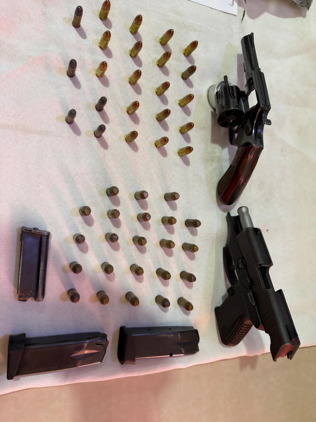 Durante la requisa del lugar, el personal policial incautó una pistola Taurus calibre 40 con dos cargadores y 12 municiones, así como un revólver calibre 32 sin municiones en el tambor, pero con 5 proyectiles sueltos. Además, se encontró una bolsa con 18 municiones calibre 9mm.