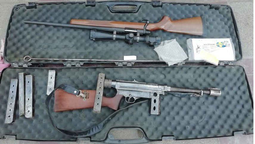 Una de ellas es un subfusil calibre .45 (11.25mm) marca Halcón (número de serie 2390), con marcas de haber pertenecido a Gendarmeria Nacional. Con cargador colocado conteniendo dos cartuchos, y con cuatro cargadores extras vacíos.