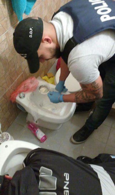 Los efectivos detectaron que había cocaína tirada por toda a propiedad, e inclusive habían tratado de ocultarla en los desagües del baño. En total hallaron 65 gramos de esa droga, $2.000, cinco celulares y documentación.