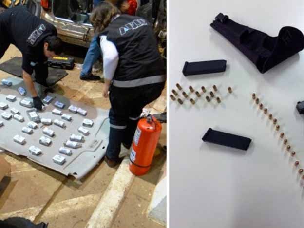 En el primer caso, se detuvo a un ciudadano paraguayo cuando intentó entrar al país una pistola Glock 9 mm escondida en el interior de un Hyundai Veracruz (con patente de Paraguay), que además de estar cargada, tenía aparte otro cargador con 14 balas.