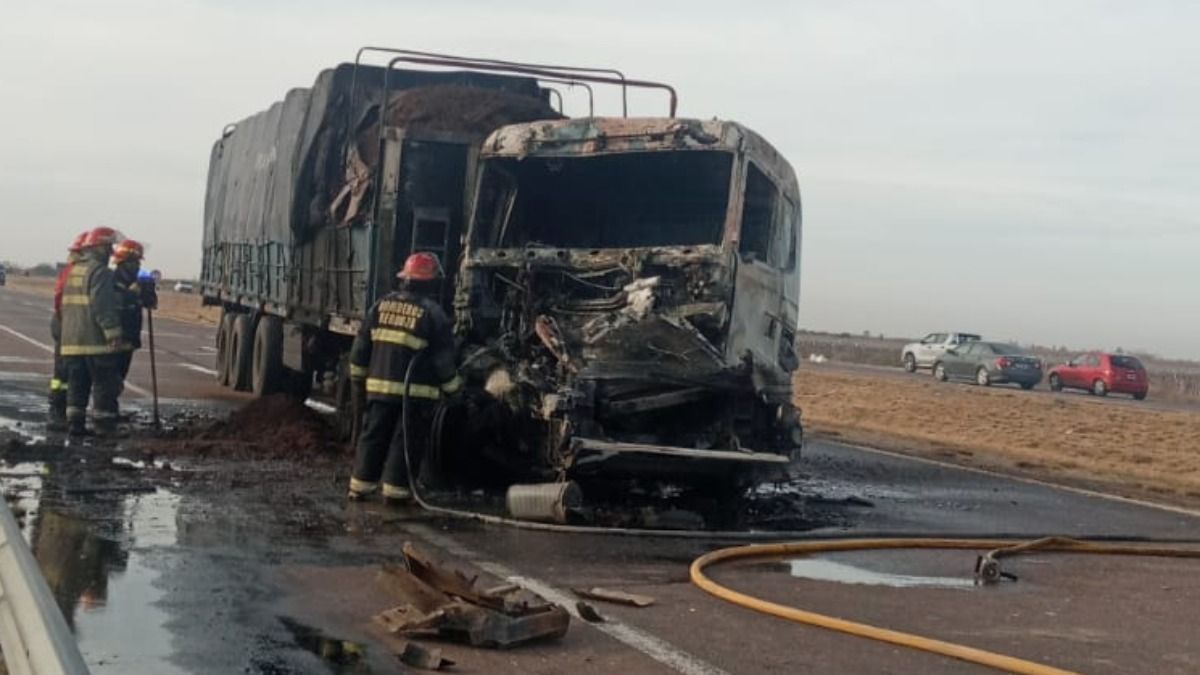 Fotos y videos: dos camioneros salvaron su vida tras un choque con incendio en Ruta 7