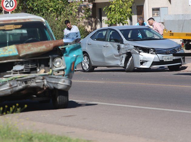 La vieja camioneta terminó con el frente totalmente destrozado, en tanto el Toyota sufrió un importante abollón sobre la puerta del acompañante y se le rompió el eje de la rueda derecha.