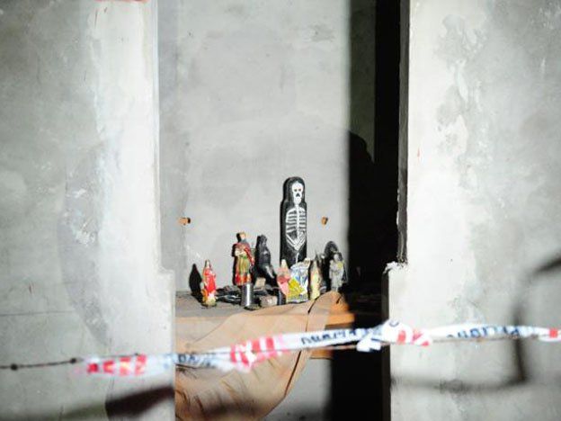 Fue en el santuario pagano de San La Muerte. Estaba dentro de una precaria pero prolija construcción entre figuras de San La Muerte, San Jorge y Santa Lucía.