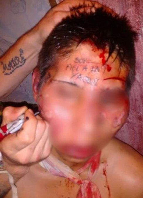 No sólo a Marín le inscribieron en su cara frases relacionadas con la Yaqui, sino también le escribieron otras palabras y hasta le tatuaron un pene. Los tatuajes fueron hechos con una pequeña máquina muy utilizada en las cárceles.