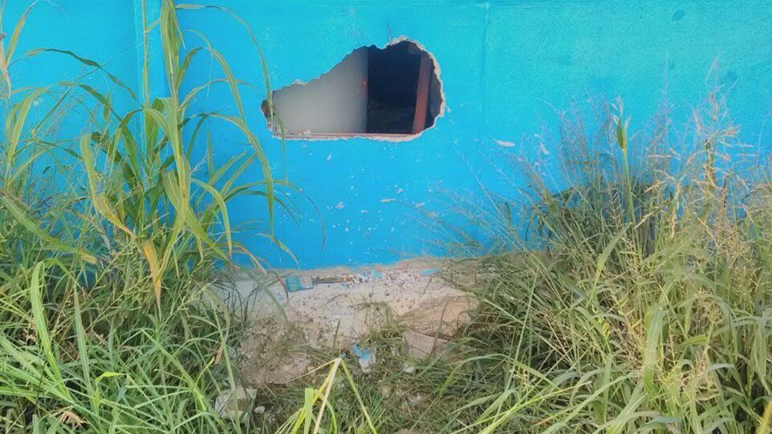 Según se pudo observar, los ladrones llegaron por el terreno del fondo, y con tranquilidad comenzaron a derribar parte de las placas de hormigón hasta que quedó un hueco donde podían ingresar con tranquilidad una o dos personas, así como sacar los elementos robados sin dificultades.
