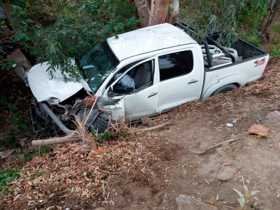 Después de este toque el conductor perdió el control de su camioneta y terminó en una honda acequia paralela a la calle.
