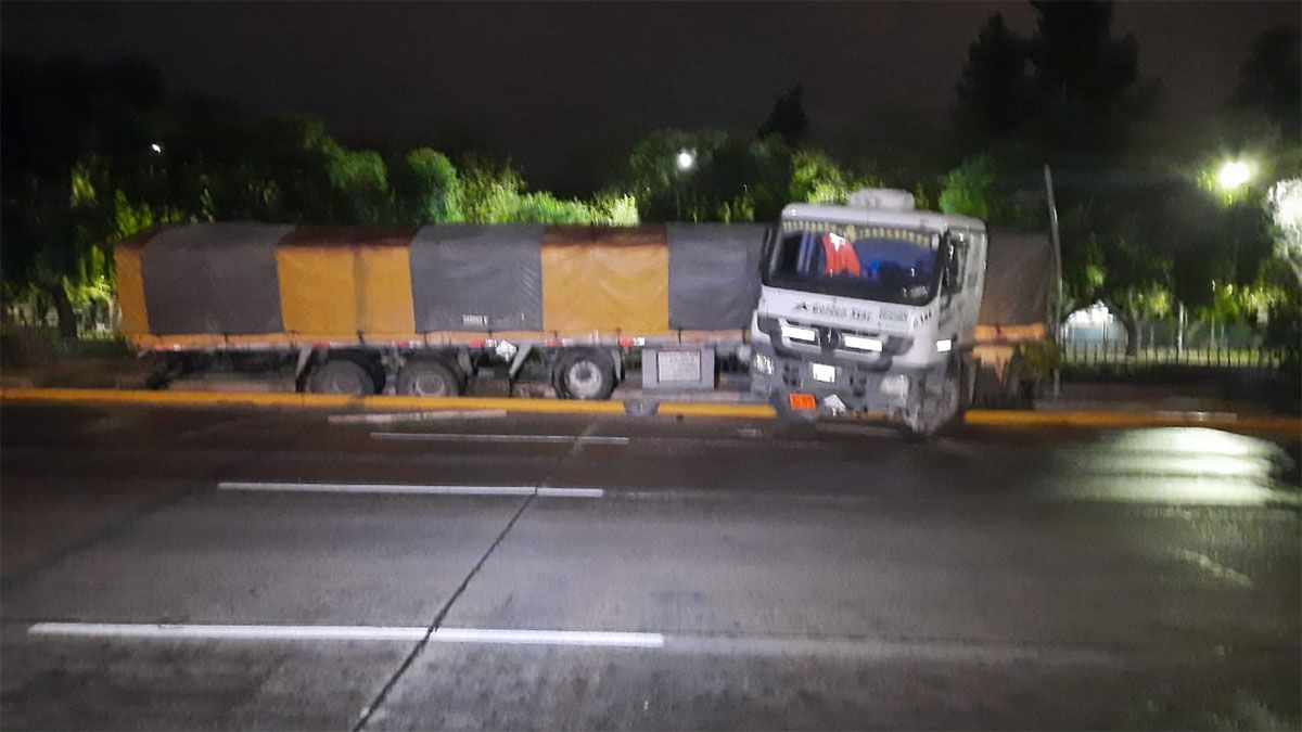 El accidente ocurrió pasadas las 6 de este viernes, en la mano Norte de Costanera, en la curva antes de calle Matienzo, de Guaymallén, donde el chofer del camión con acoplado perdió el control aparentemente como consecuencia de la calzada resbaladiza por las lluvias.