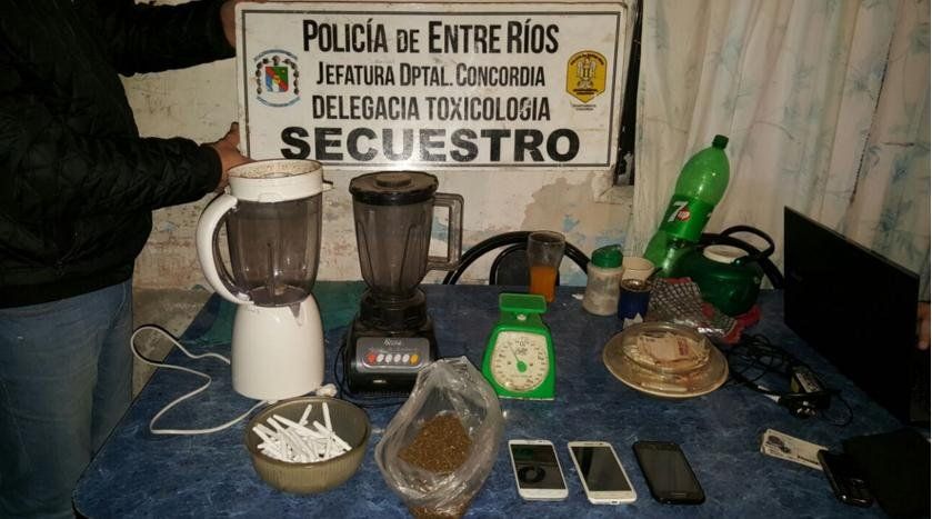 Personal de la Jefatura departamental de Concordia, en el marco de un proceso investigativo por comercialización de estupefacientes, concretó allanamiento y requisa domiciliaria de una vivienda de la calle Florenza, donde se incautó marihuana, dinero, elementos para fraccionar sustancias estupefacientes, aparatos de telefonía celular, entre otros objetos de interés a la causa. También se detuvo a una pareja, ambos mayores de edad.