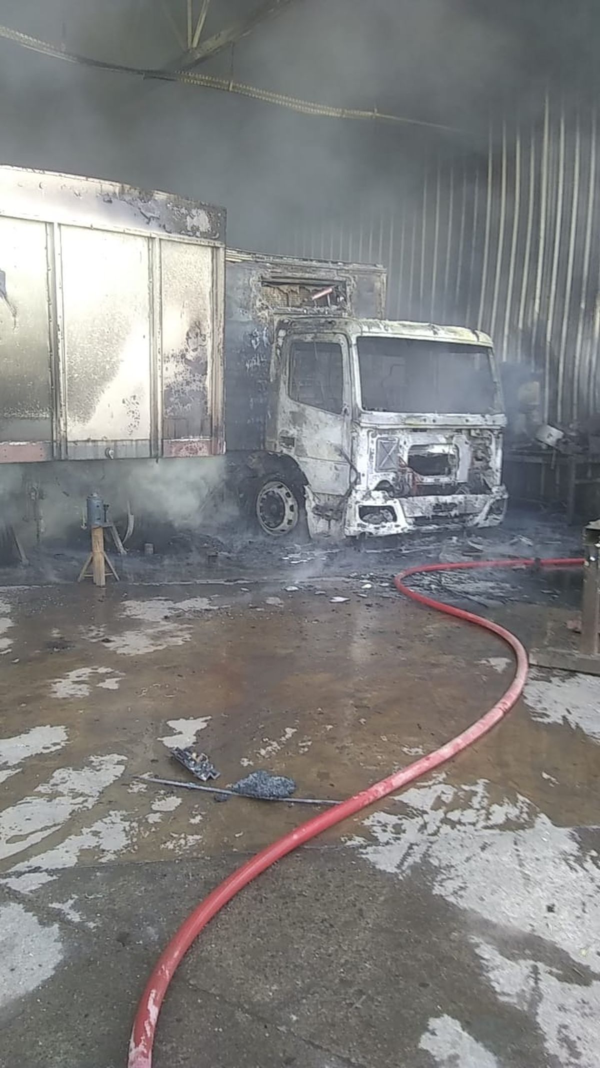 Una vez que las llamas ya se habían propagado, ardieron tres camiones y un gran sector de depósito.