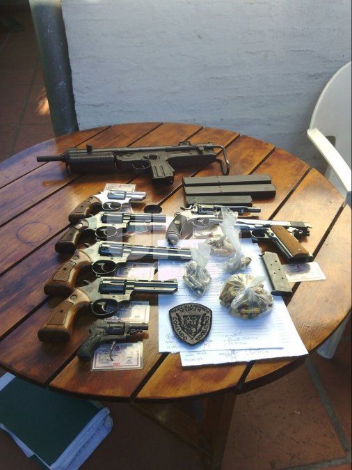 Se trata de una pistola ametralladora marca Colt FMK 5 con cargador con capacidad para 40 cartuchos y cargado con 25 balas calibre 9 milímetros y otros dos cargadores, una pistola calibre 11,25, un revólver calibre 38 marca Taurus, dos revólveres calibre 32 sin marca, un revólver calibre 38 marca Taurus, un revólver calibre 357 marca Taurus modelo Magnum, un revólver calibre 635 sin marca y sin cartuchos, además de decenas de balas de todos los calibres mencionados.