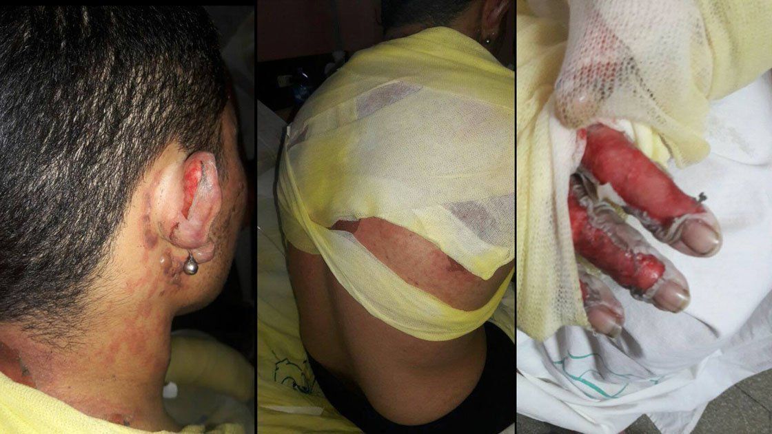 "Aproximadamente a las 4 de la madrugada, cuando descansábamos con mi compañero, nos tiraron una antorcha prendida fuego y ahí casi nos morimos quemados; estamos en grave estado esperando que nos lleven de urgencia a Buenos Aires", relató.
