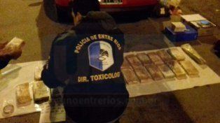 Ante tal situación, se dio intervención a la División Toxicología, y se anotició lo acontecido al Juzgado Federal de Concepción del Uruguay. Con la orden de requisa vehicular y personal, hallaron, entre otros elementos, un bolso de viaje que contenía una balanza electrónica y en otro bolso, 26 envoltorios compactos rectangulares, con polvo blanco por fuera y recubiertos con papel film y por fuera una sustancia viscosa, que contenían marihuana. En sede judicial el tóxico incautado arrojó un peso de 23,9 kilos.