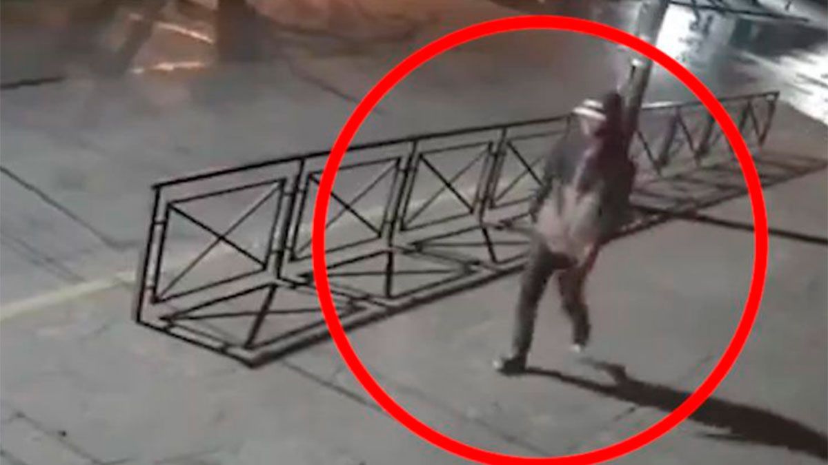 El sospechoso quedó registrado en otra cámara de la zona del crimen mientras se aleja tranquilamente y descarta lo que se presume como el arma homicida en un cesto de basura, con el rostro cubierto, una gorra con visera y las manos en los bolsillos.