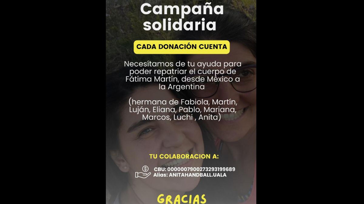 Fátima Estefanía Martín (36) estaba a horas de regresar hacia San Rafael luego estar radicada 9 años en México. El reencuentro con su familia quedó truncado porque fue asesinada antes de poder subirse al avión de regreso. Mientras en ese país avanzan con la investigación calificada como femicidio, sus familiares piden ayuda para poder repatriar el cuerpo de la joven.