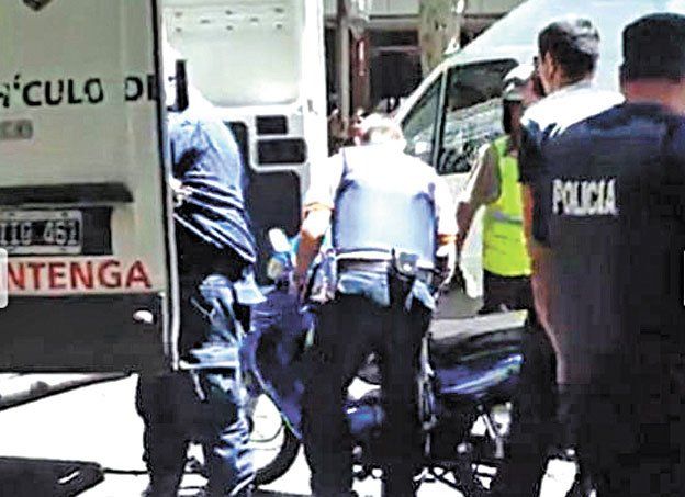 El conductor de la moto ya había arrancado para escapar a contramano por Amigorena pero en el apuro por desaparecer cuanto antes del lugar calculó mal la distancia y fue a embestir a un automóvil.