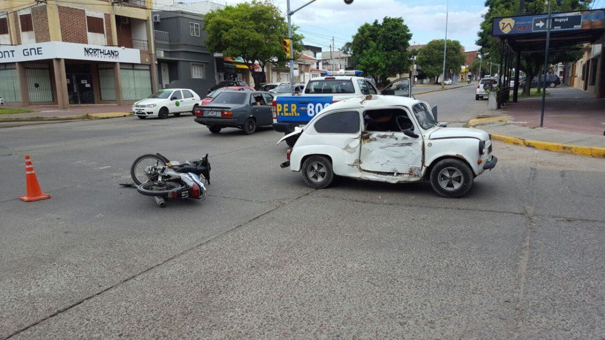 Un motociclista de 24 años, que guiaba una Honda Wave, resultó lesionado al ser colisionado por un Fiat 600, conducido por un joven de 19 años.