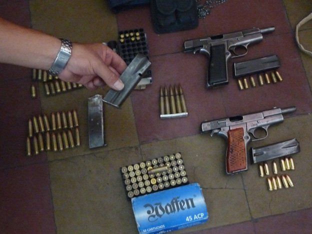 Durante el operativo los policías secuestraron dos pistolas 9 milímetros con cargadores y cartuchos, una pistola calibre 22, una pistola 45 marca Minipower, un revólver 357 Magnum. En esos domicilios los efectivos también hallaron 160 cartuchos de municiones para FAL 9 milímetros y también calibres 11.25 y 45.