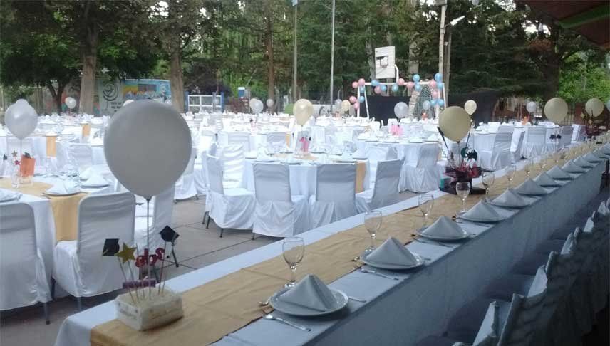 Con su ayuda, cargaron 150 sillas vestidas, 150 mesas redondas, manteles, caminos de mesas, platos, copas, cubiertos, paneras, bandejas y otros elementos.