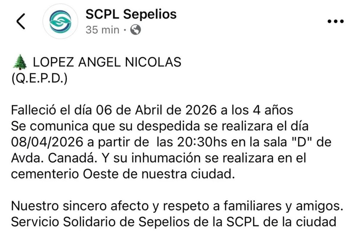 La ciudad de Comodoro Rivadavia, Chubut, no sale de la conmoción por una muerte repentina de un niño. En medio de un clima de profundo dolor y desconsuelo, familiares, amigos y vecinos de la zona sur le dieron el último adiós a Ángel Nicolás López, el pequeño de 4 años que falleció en circunstancias que la Justicia aún intenta esclarecer.