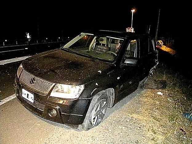 Los delincuetes huyeron, perseguidos por la policía por una ruta de la zona, pero, según la policía, tenían cómplices ocultos cerca de un puente, quienes tiraron piedras y "miguelitos" contra el auto policial.