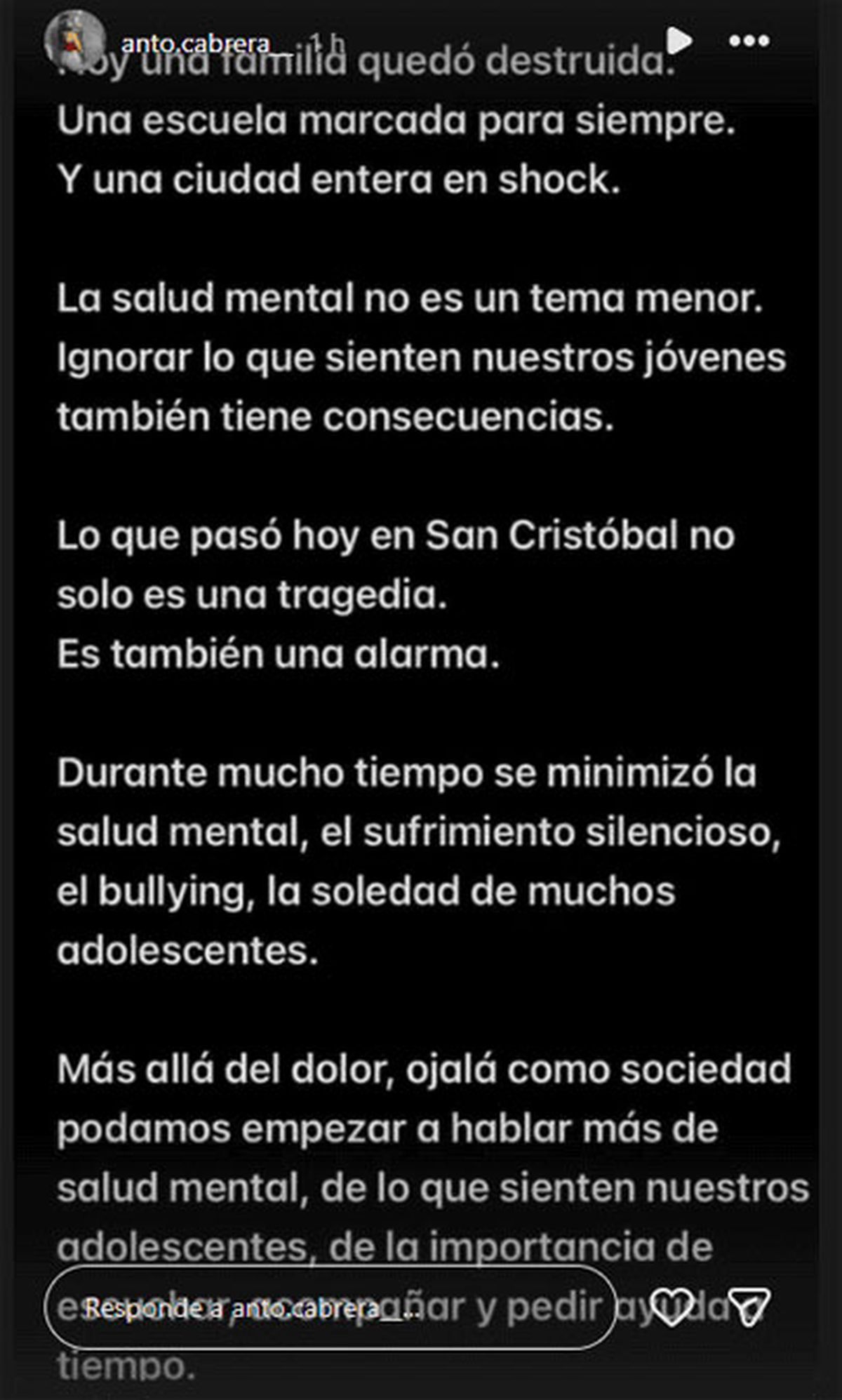 En medio del dolor, las voces que se alzaron en la despedida de Ian no solo pidieron justicia y consuelo, sino también reflexión. "Lo que pasó hoy en San Cristóbal no solo es una tragedia. Es también una alarma", advirtió una familiar de la víctima a través de sus redes sociales.