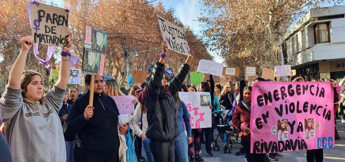 Más de 500 personas salieron a manifestarse en la tarde de este lunes en Rivadavia para reclamar justicia tras el femicidio de Karen Ríos, ocurrido en esta misma jornada. Familiares, amigos, vecinos y conocidos respondieron rápidamente a la convocatoria por redes sociales.