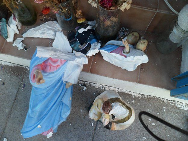 Aparentemente, los vándalos atacaron el lugar durante la madrugada del jueves y por la mañana, los vecinos se encontraron con el desastre. Abrieron la reja de la ermita, destruyeron las figuras y luego las colocaron otra vez dentro. Cerraron la reja y huyeron sin dejar rastro.