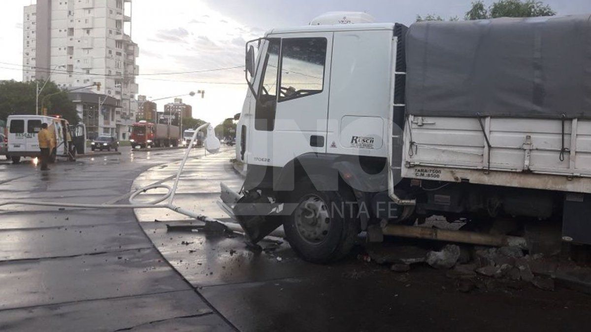 En las primeras horas de este martes, un camión que circulaba por avenida Alem se quedó sin freno y decidió chocar contra una columna de alumbrado, a la altura de calle Tucumán.