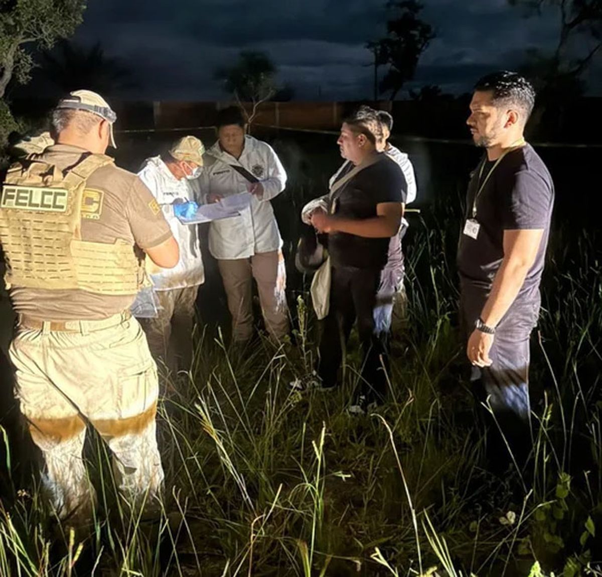 Por su parte, el Fiscal asignado al caso, Franz Delgadillo, explicó que personal de la Fuerza Especial de Lucha Contra el Crimen (FELCC) de Porongo se acercó a la escena y allí evidenció un cadáver enterrado a aproximadamente un metro de profundidad, además del hallazgo de casquillos de arma de fuego en la escena, procediéndose a la identificación de la víctima de homicidio mediante sus documentos personales.