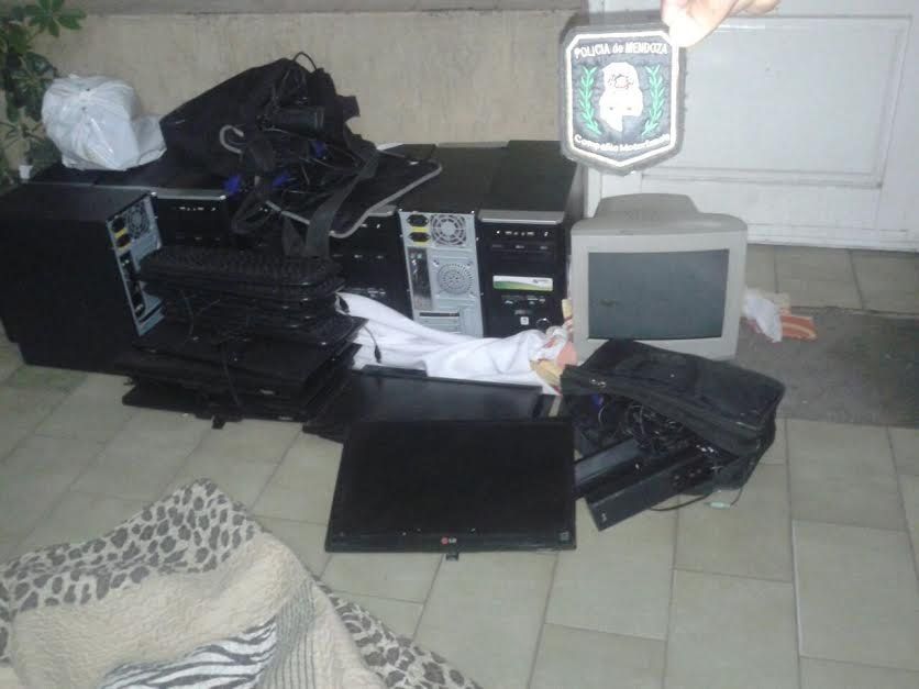 En la requisa, autorizada por la madre del detenido, los uniformados secuestraron 10 cpu, 10 monitores LED, 10 teclados, 1 monitor de escritorio, 9 mouse, 8 pares de parlantes, 5 fuentes de alimentación, cables, un kit de herramientas, filtros de aire, grifos y picotas.
