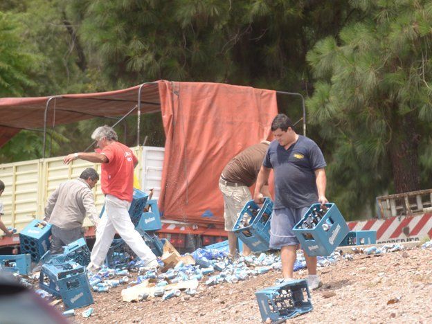 Se robaron los cajones de cerveza de un camión volcado frente a la Virgen
