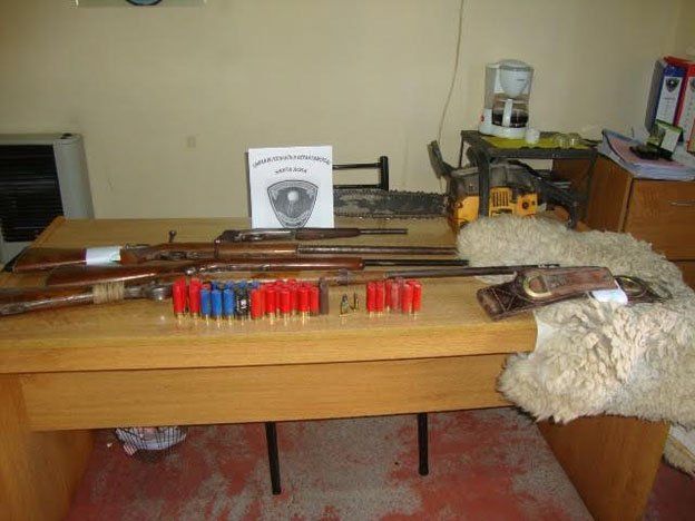 En total secuestraron una escopeta calibre 28, otra calibre 16, una carabina calibre 22 y un pistolón calibre 12. Además hallaron más de 60 cartuchos de diferentes calibres y una motosierra.