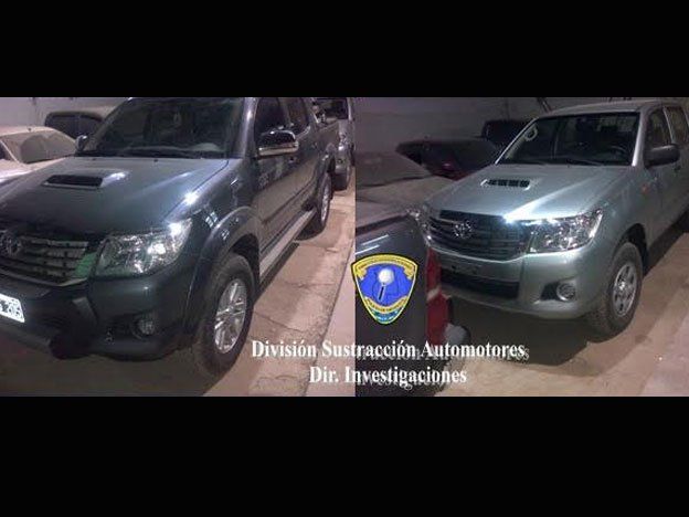 Allí encontraron dos camionetas Toyota Hilux. Una de ella 0Km. El operativo se inicio a raíz de una denuncia realizada días atrás por un sujeto de 37 años - oriundo de Corrientes- que daba a conocer que había realizado una transacción vía internet por la compra de un rodado por el cual deposito la suma de 585.000 pesos sin recibir el bien a cambio.