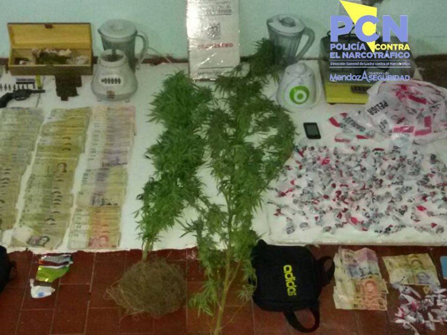 Los operativos se realizaron en Las Heras y en la terminal de ómnibus de Guaymallén. Secuestraron marihuana, plantas, semillas, cocaína, un revólver, balas y elementos de estiramiento y fraccionamiento. Los capturados quedaron