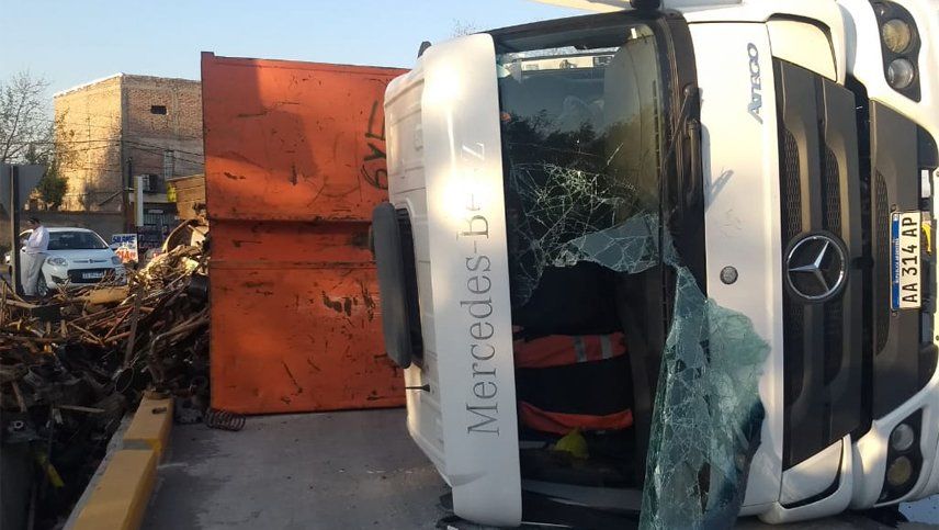 El conductor del camión quedó atrapado en la cabina, colgando del cinturón de seguridad hacia la puerta del acompañante. Un vecino lo intentó ayudar, pero no pudo, por lo que el chofer se desprendió el cinturón y golpeó contra el sector opuesto del rodado.