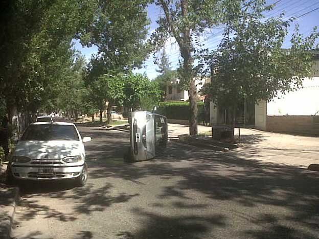 Sobre dos ruedas quedó un Honda Fit que volcó cerca del Shopping