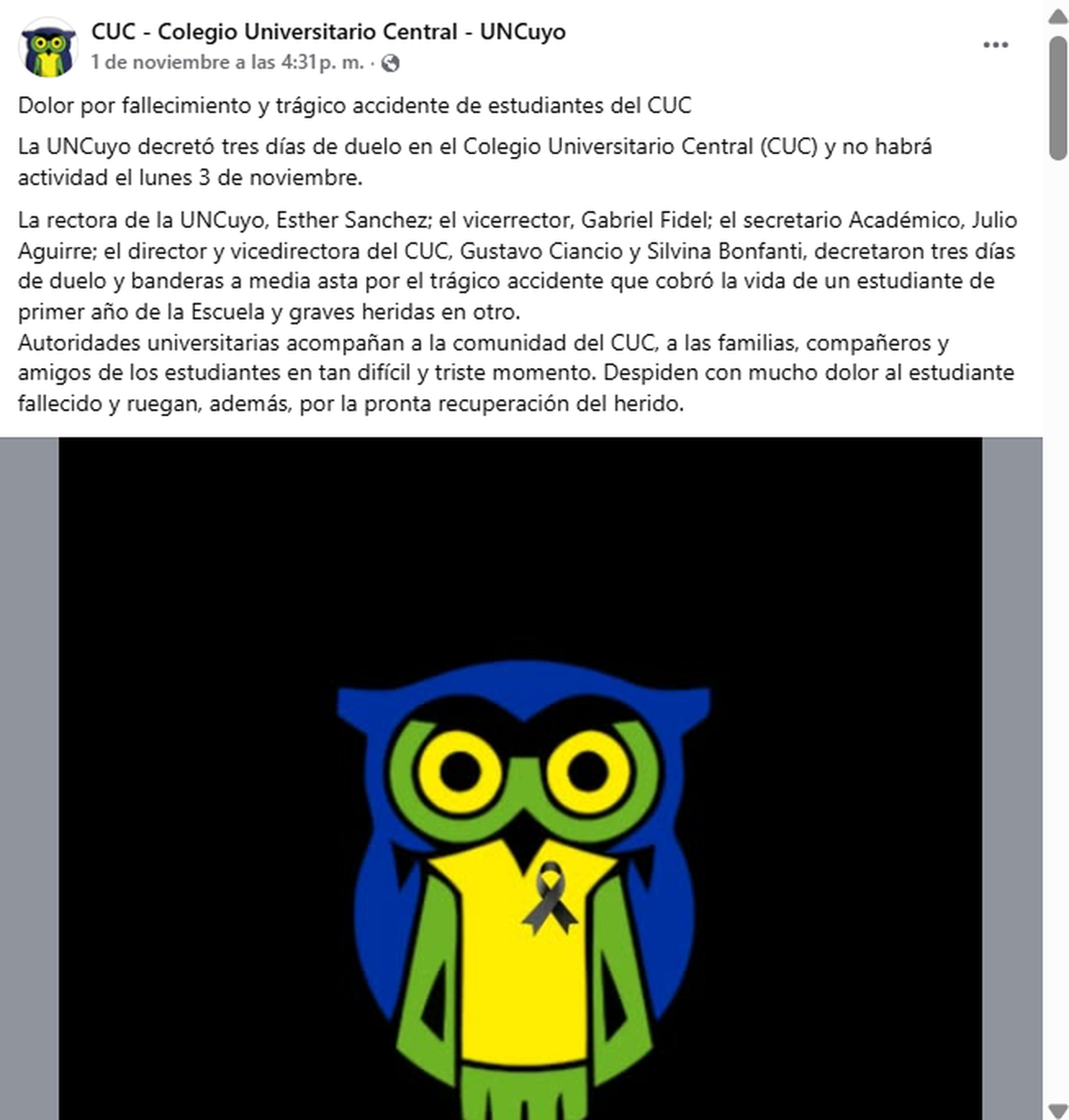 En el posteo del CUC, en tanto, los usuarios de Facebook lamentaron la muerte de Fausto y muchos le encomendaron su alma a Dios. "No hay palabras… sólo pedir fuerzas para su familia para afrontar un momento tan desgarrador", expresó una usuaria.