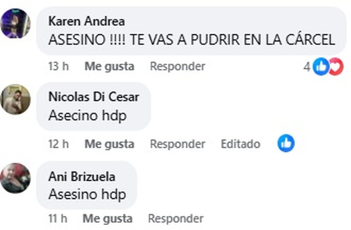 "Asesino hdp", "te vas a pudrir en la cárcel", son algunos de los mensajes que se repiten a lo largo de los distintos posteos del perfil de Facebook de Enzo Manuel Valdovino. La gente reaccionó en repudio contra el hombre, tras darse a conocer que sería el autor del femicidio de su ex pareja de 57 años, Sandra Sánchez, quien murió tras una herida cortante luego de un forcejeo.