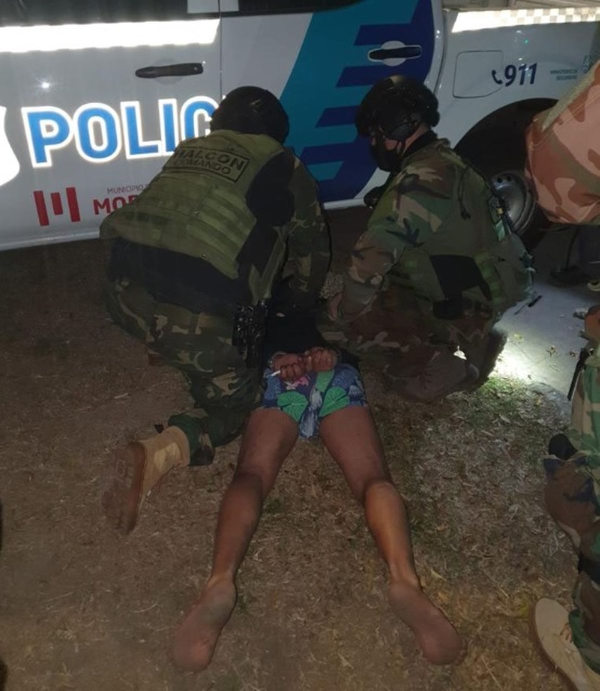 Al tomar conocimiento del hecho, efectivos de la Comisaría 6ª de Morón llegaron a la casa, momento en que el hombre tomó un cuchillo y se atrincheró en el jardín de la vivienda, donde amenazó a las mujeres.