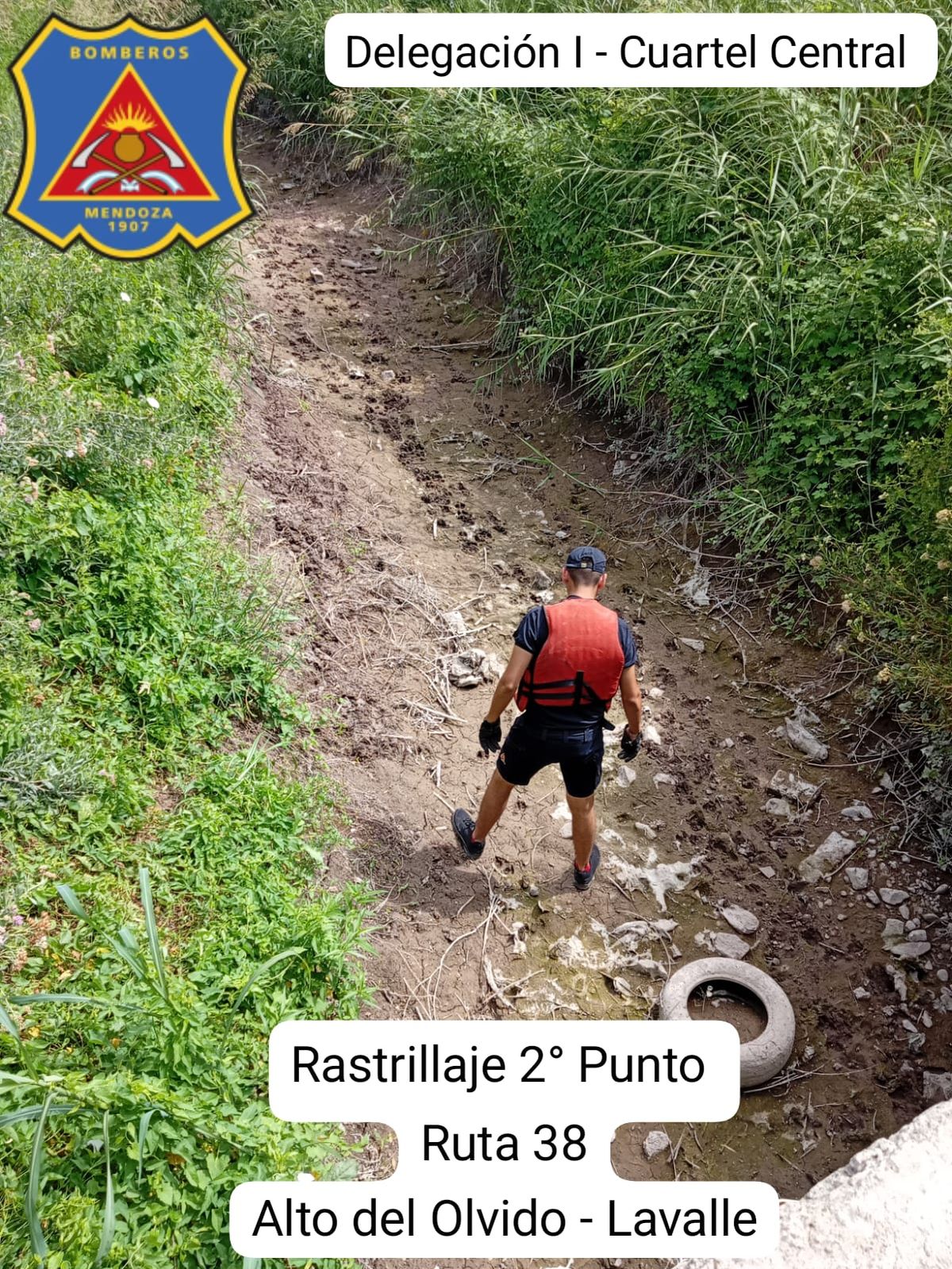 La búsqueda continuó por Ruta 27 hasta la intersección con el puente de Ruta 38 del distrito de Alto del Olvido, donde los bomberos constataron que no había caudal de agua. Al recorrer el lugar, solo observaron huellas de animales.