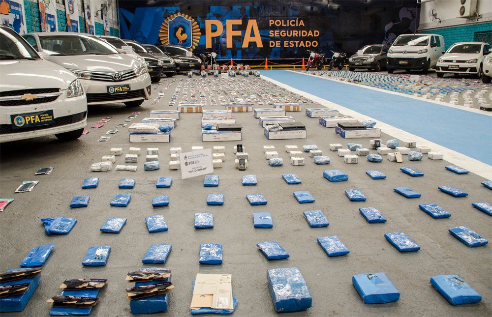 La ministra de Seguridad de la Nación, Patricia Bullrich, y el jefe de la Policía Federal, comisario general Néstor Roncaglia, presentaron el megaoperativo denominado "Alijo Guasú", en el que se desbarató a esta red internacional.