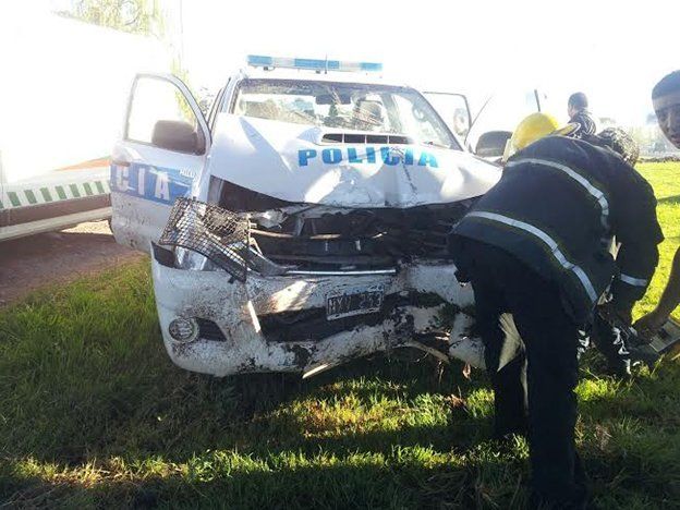 Tres policías sufrieron lesiones y una camioneta de la fuerza quedó destrozada luego de caer a una acequia y chocar contra una columna de un puente en el Acceso Sur, en Godoy Cruz. Se desplazaban hacia un banco donde se disparó una alarma. Los efectivos fueron trasladados a la Clínica Francesa fuera de peligro. El tránsito vehicular en la zona no fue cortado, pero el choque igualmente complicó la circulación.