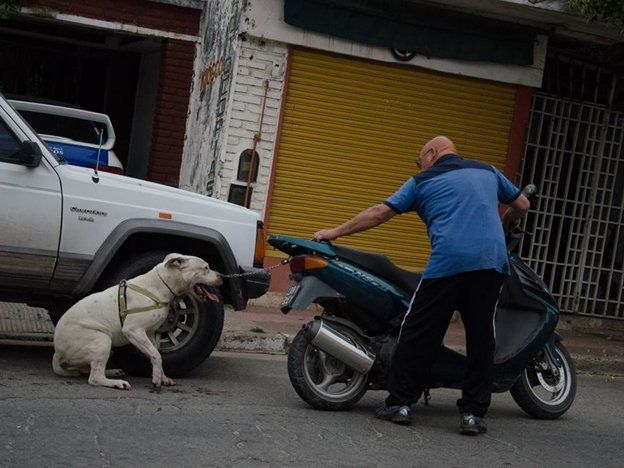 El testigo observó como el hombre ataba al can a una moto y lo arrastraba por el asfalto. Se encargó de llamar a las autoridades y de fotografiar lo sucedido.