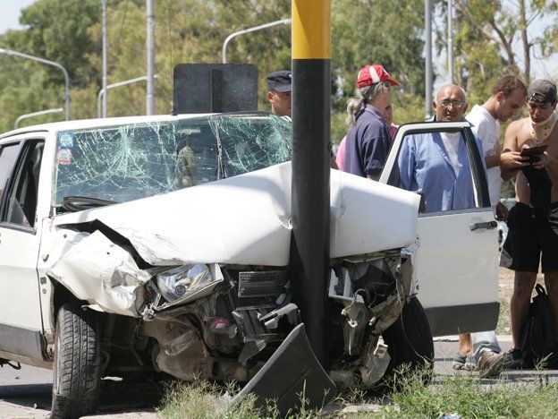 El Fiat terminó incrustado en el poste del semáforo. La fuerza con que golpeó contra el pilote descolgó el semáforo que terminó sobre el pavimento.