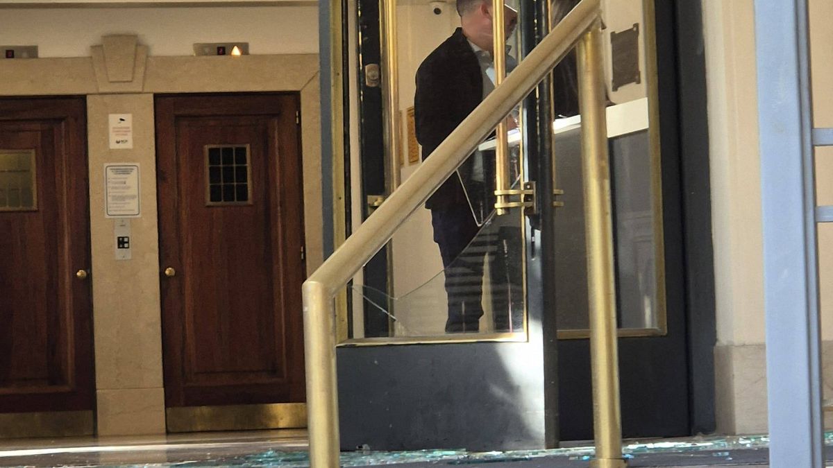 El delincuente burló a los custodios e intentó escapar rompiendo una puerta de vidrio de la entrada del edificio de la Bolsa de Comercio. Se cortó una vena