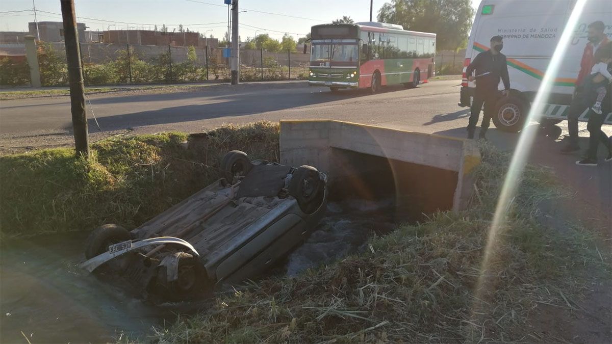 Una mujer y su hija resultaron ilesas luego de un impactante accidente en el que terminaron con su auto dentro de un cauce de agua en Guaymallén. Del auto quedó con las ruedas hacia arriba luego de chocar con un colectivo.