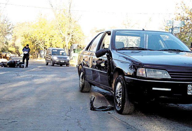 Una motocicleta en la que viajaban una mujer con una niña de cinco años protagonizó un choque con un Peugeot 405, en Colón y Beltrán de San Rafael.El accidente ocurrió cuando la moto, que circulaba por Colón, impactó en la puerta trasera del lado del acompañante del vehículo conducido por un hombre que transitaba por Beltrán.