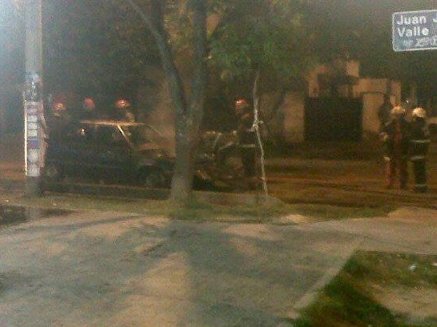 Un auto Renault 11 se incendió y dos dotaciones de bomberos trabajaron en el lugar, además de un móvil policial.